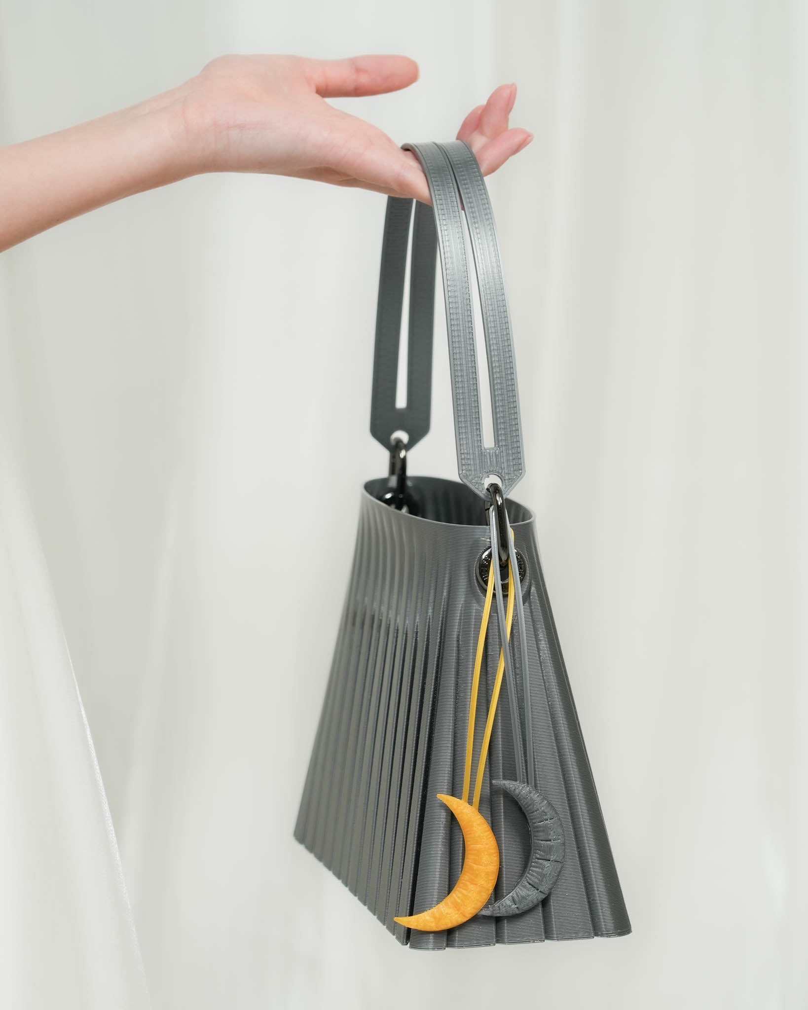 Add a celestial touch to your bag with our Moon Charm. Designed with a sculpted, pillowy form, this 3D-printed piece brings a dreamy touch to any accessory.