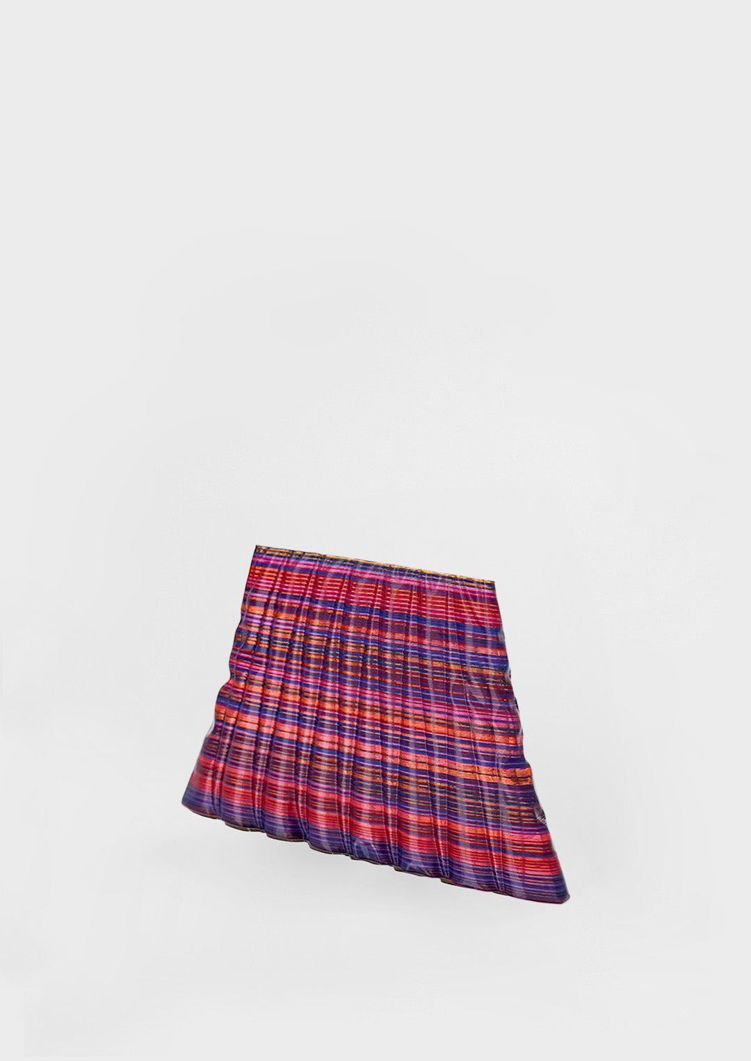 This piece features an exaggerated silhouette, making a bold statement with its compact, clutch-size shape. Its unique texture flows like soft, moving fabric, catching the light and creating a sense of depth.