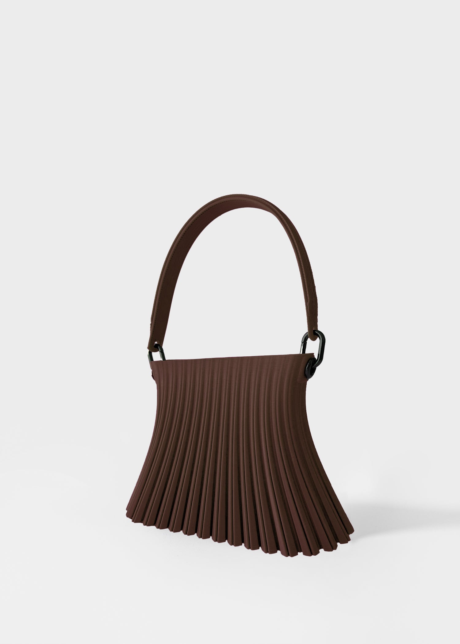 The latest addition to our ensemble – the curvey "Selo" handbag. Crafted with precision, its captivating, curved silhouette captures attention, accentuated by the meticulously piped lining that traverses the entire bag.