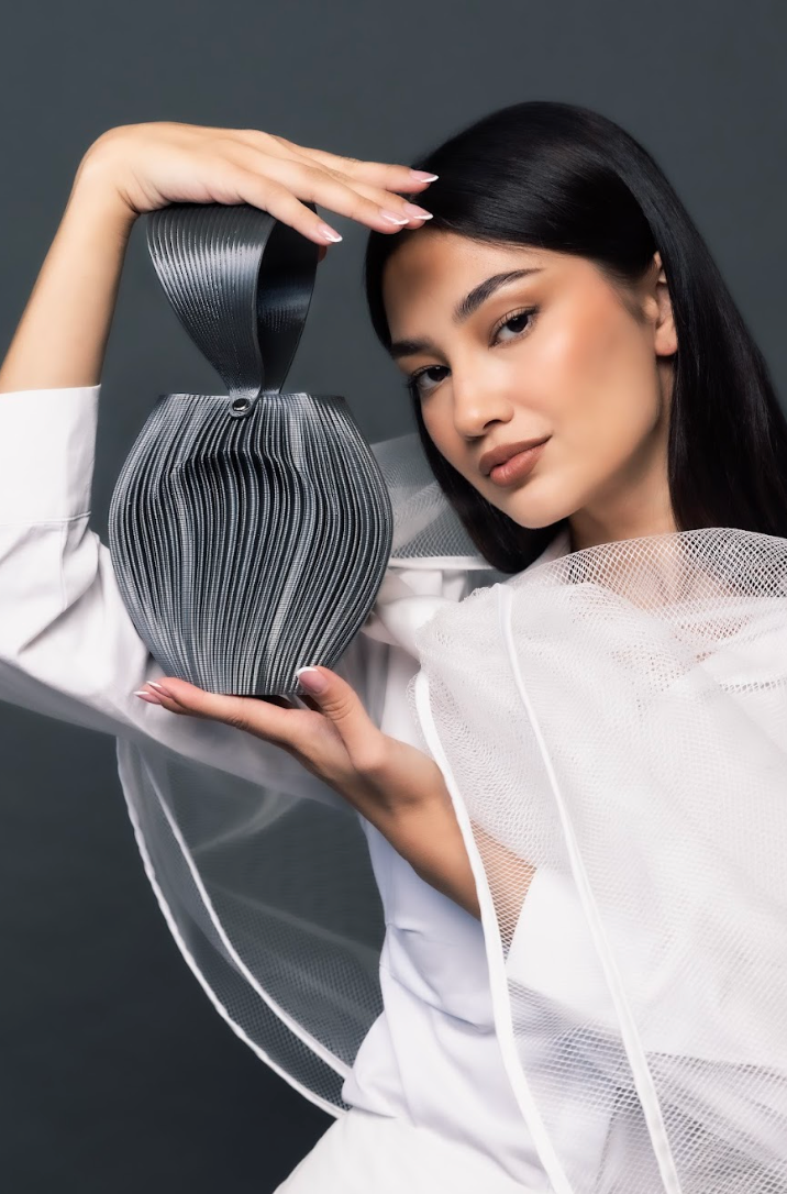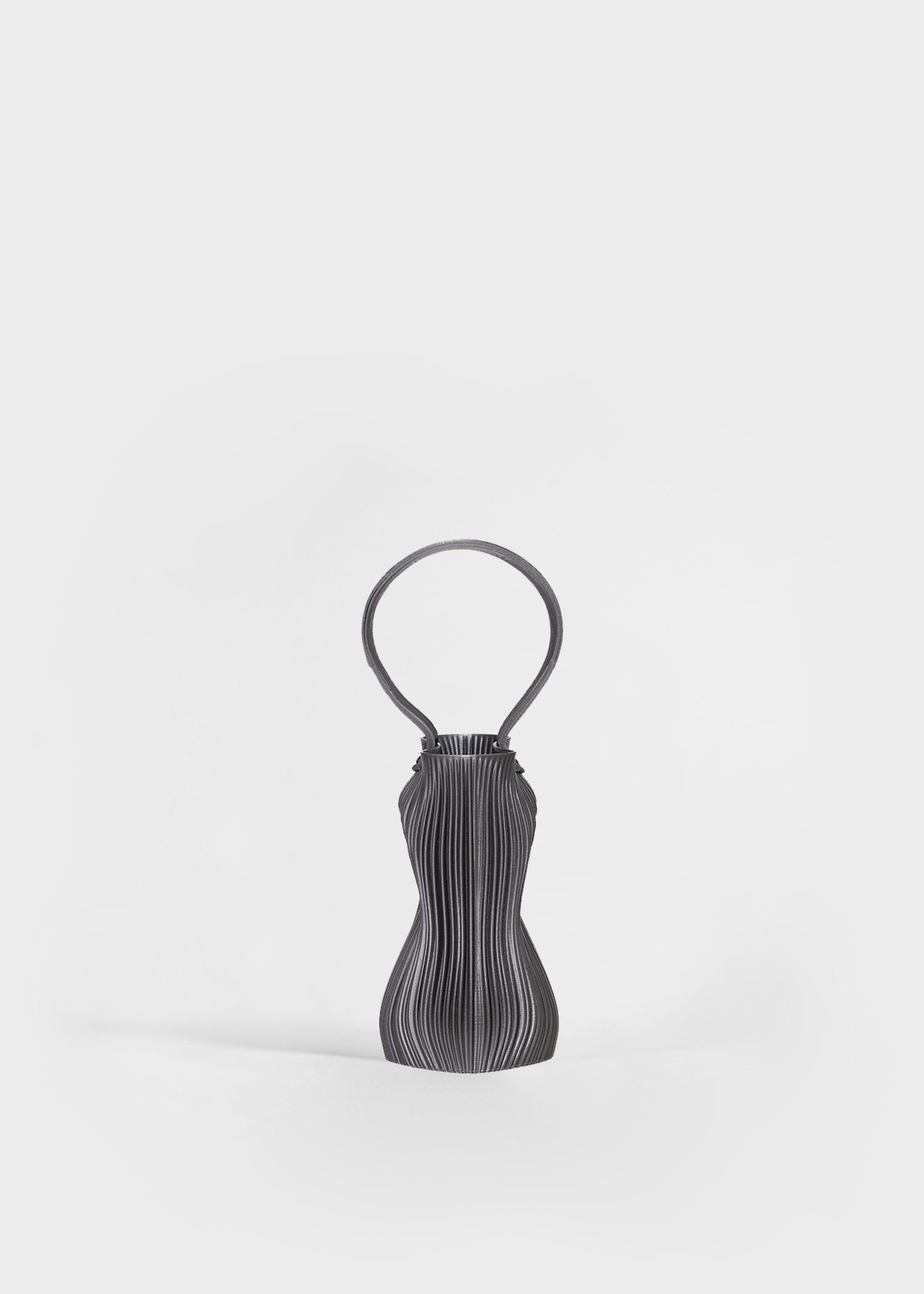Eve, a handbag that redefines elegance with its complex, sculptural form. Inspired by the female silhouette, Eve is more than just an accessory—it's wearable art. Suspended on an exaggerated cuff, this unique design effortlessly drapes over your arm, making it the perfect statement piece for a night out. With Eve, every detail is crafted to turn heads and leave a lasting impression.