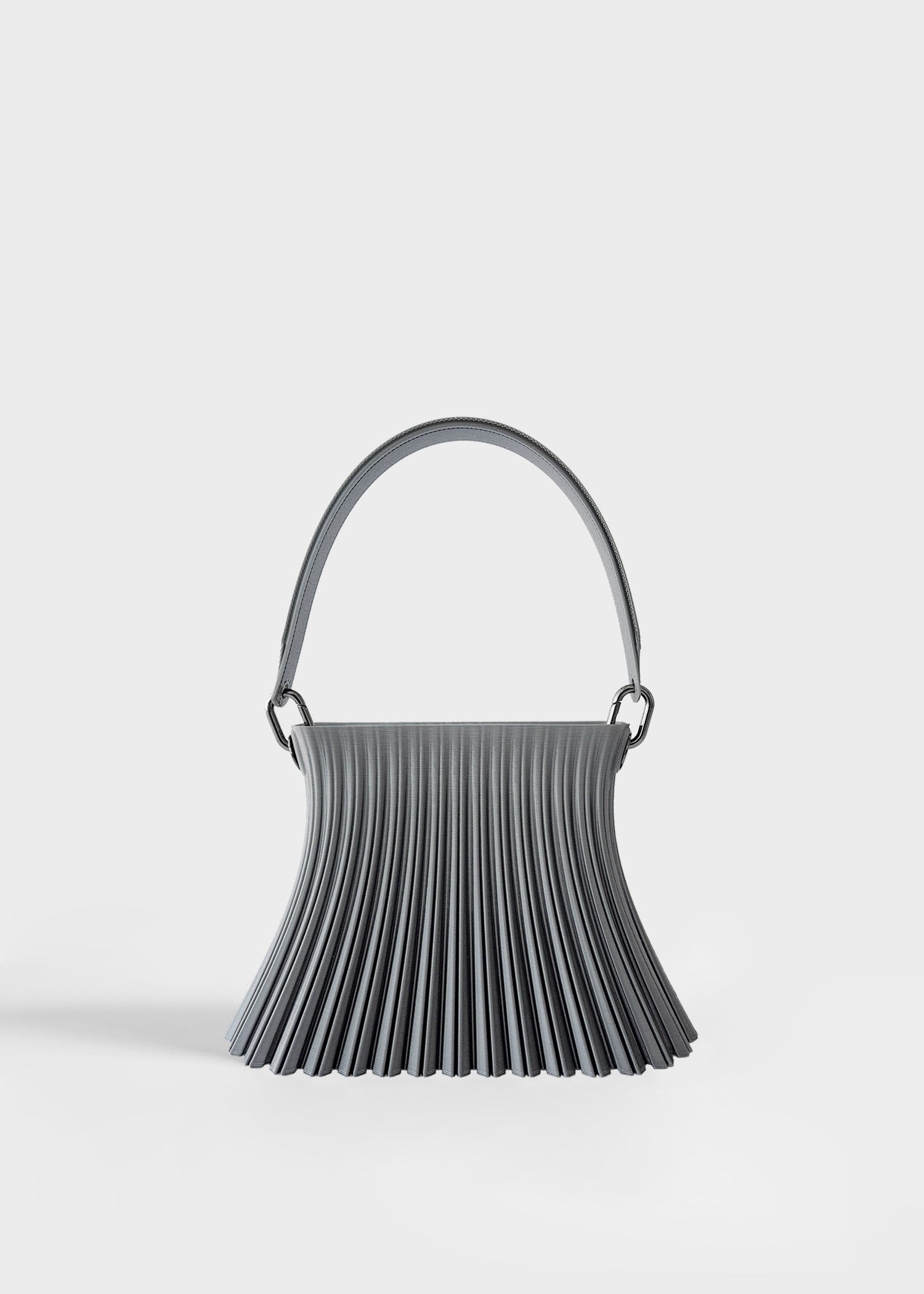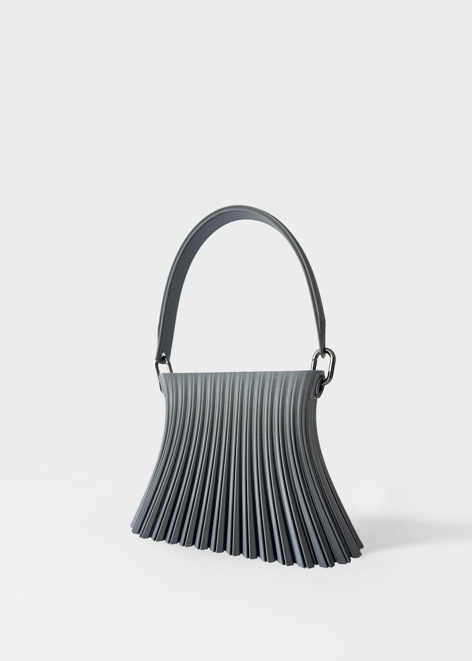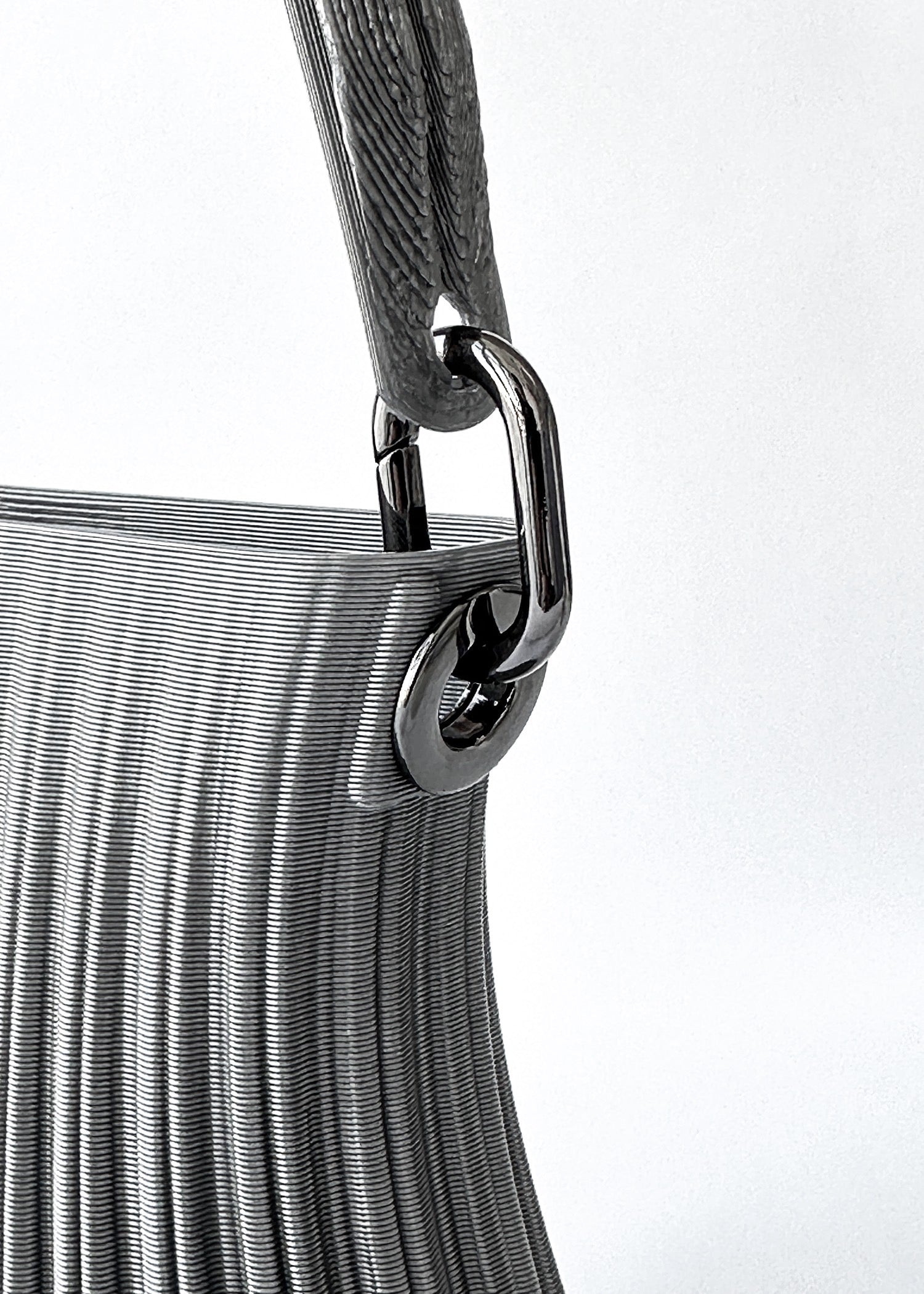The latest addition to our ensemble – the curvey "Selo" handbag. Crafted with precision, its captivating, curved silhouette captures attention, accentuated by the meticulously piped lining that traverses the entire bag.